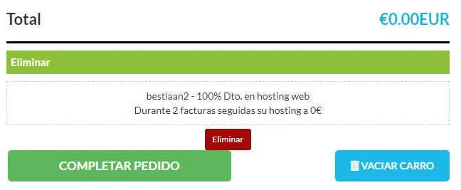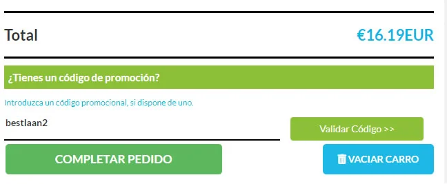 A continuación, te dan la opción de incluir un codigo descuento. Aquí es donde tendrás que introducir Bestlaan2.